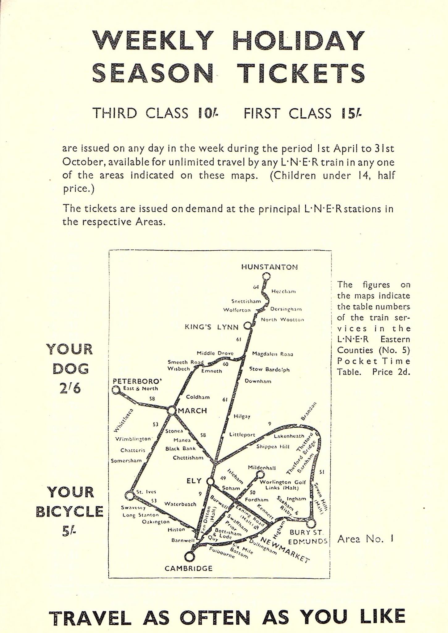 Thanks to John Bastock for finding this example of a Weekly Holiday Season Ticket offer. This must have been of interest in the village as it would made ‘day trips’ a possibility. We had a proper station then!